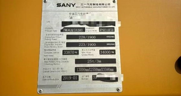 【河南】三一250T5國五,原車漆 主臂42.5米34噸自重,19年4月出廠,剛買的保險剛審的車 進口馬達,車況好,32w 看車過戶~慧